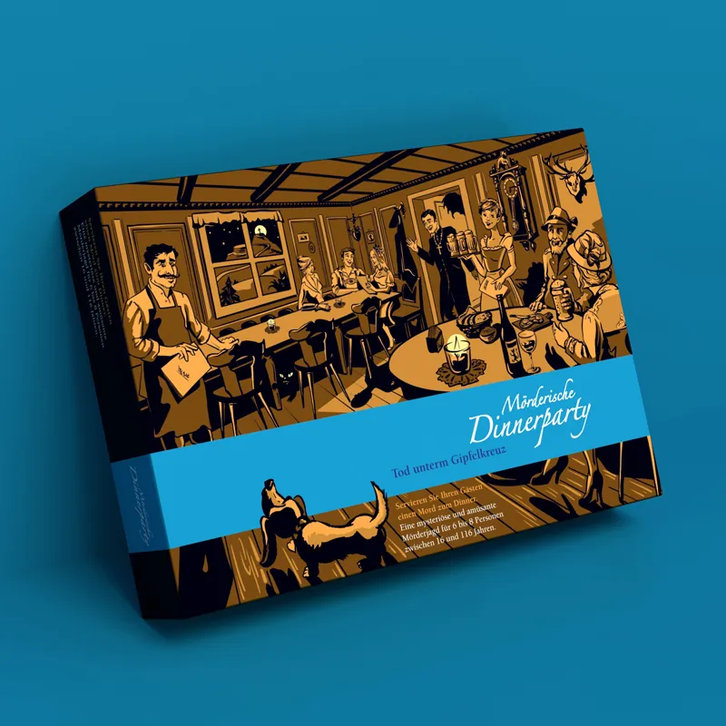 Ein Krimidinner für 6 bis 8 Personen (+ 2 Zusatzrollen) ab 16 Jahren, etwa 3 bis 4 Stunden Spieldauer