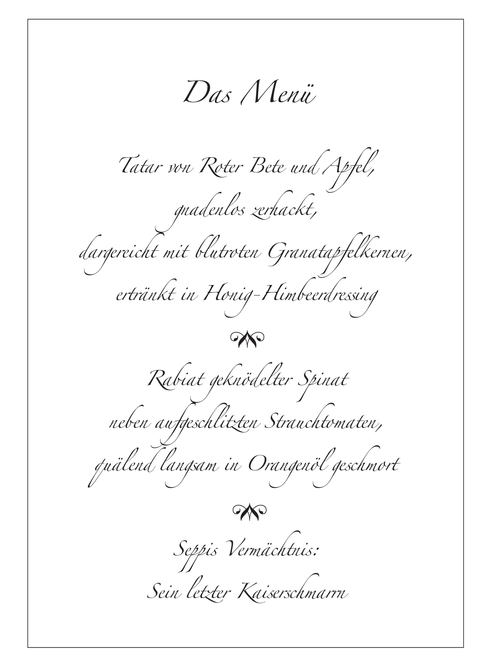 Für Ihre Mörderische Dinnerparty haben wir einen Menüvorschlag mit den dazu passenden Rezepten zusammengestellt:
